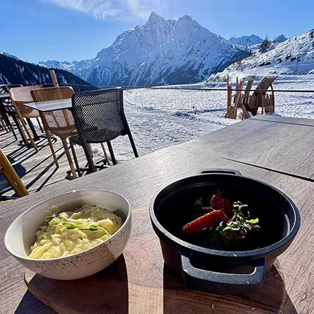 Laetitia and Matthieu, locals of the region, welcome you every day to their restaurant with a breathtaking view of Mont Pourri.
